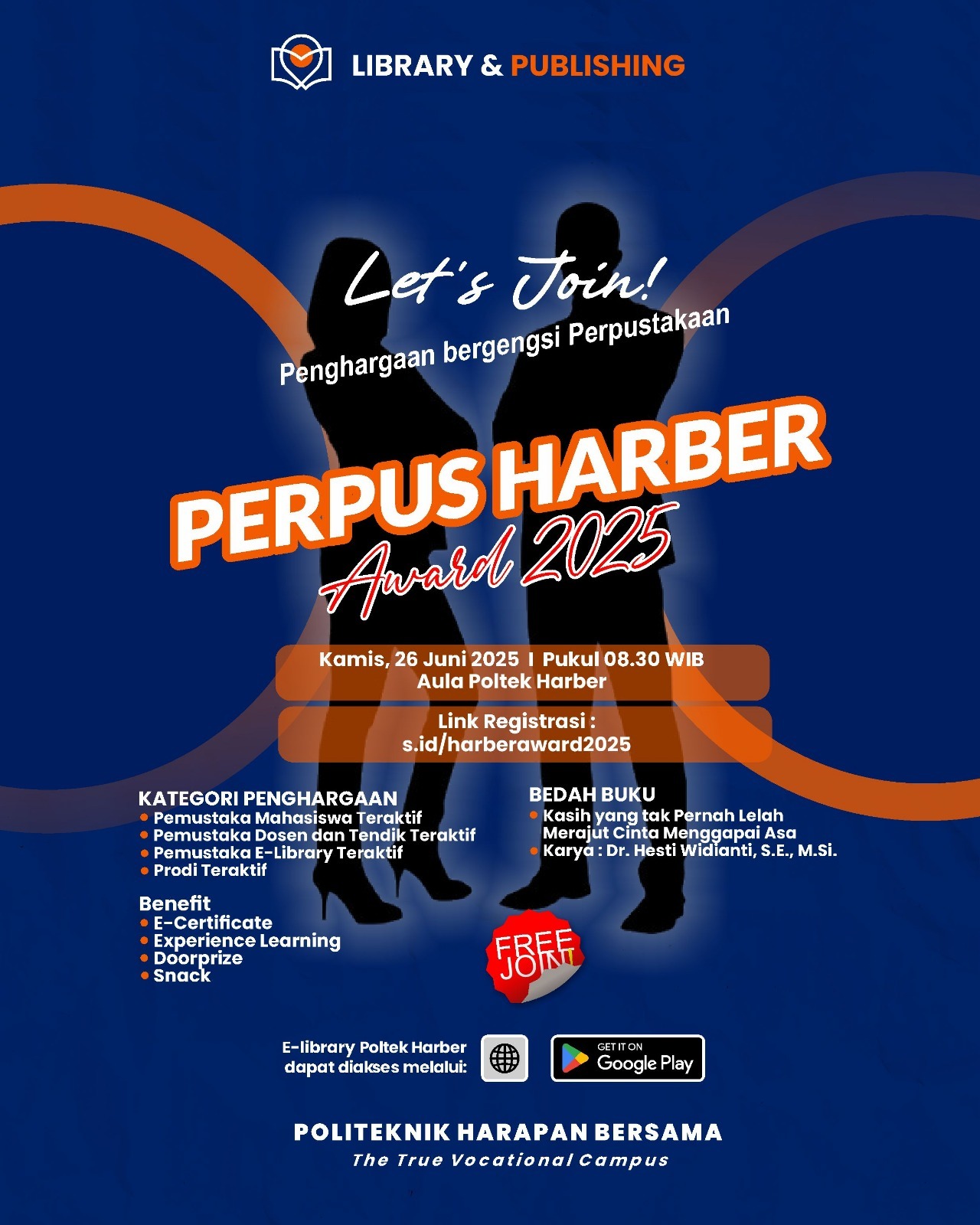 Perpustakaan dengan bangga mempersembahkan Perpus Harber Award 2025, sebuah penghargaan istimewa bagi pemustaka teraktif dan paling inspiratif dalam menebar semangat literasi sepanjang tahun! ????